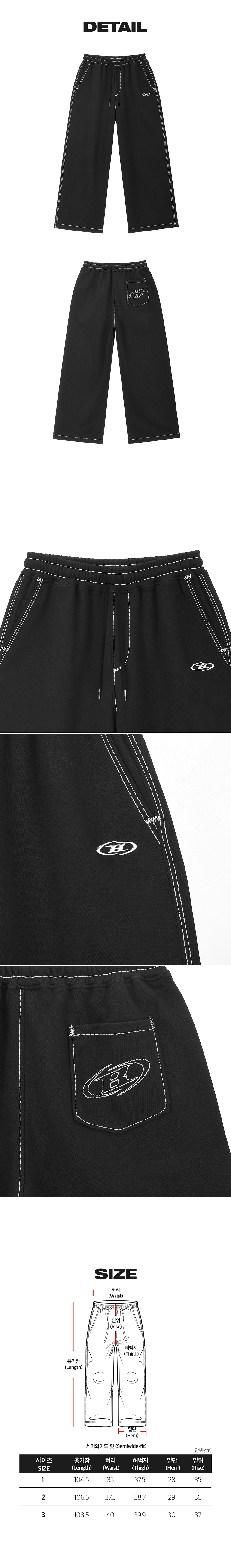 본투윈 볼드 라인 심볼 B 세미 와이드 팬츠 워시드 블랙