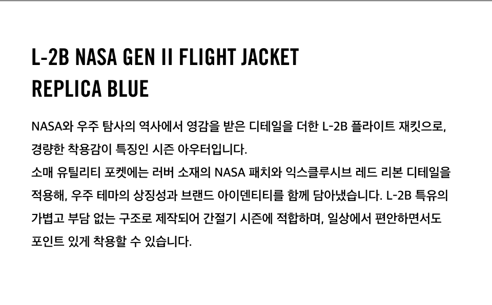 알파 인더스트리 L-2B 나사 젠 II 플라이트 자켓 레플리카 블루