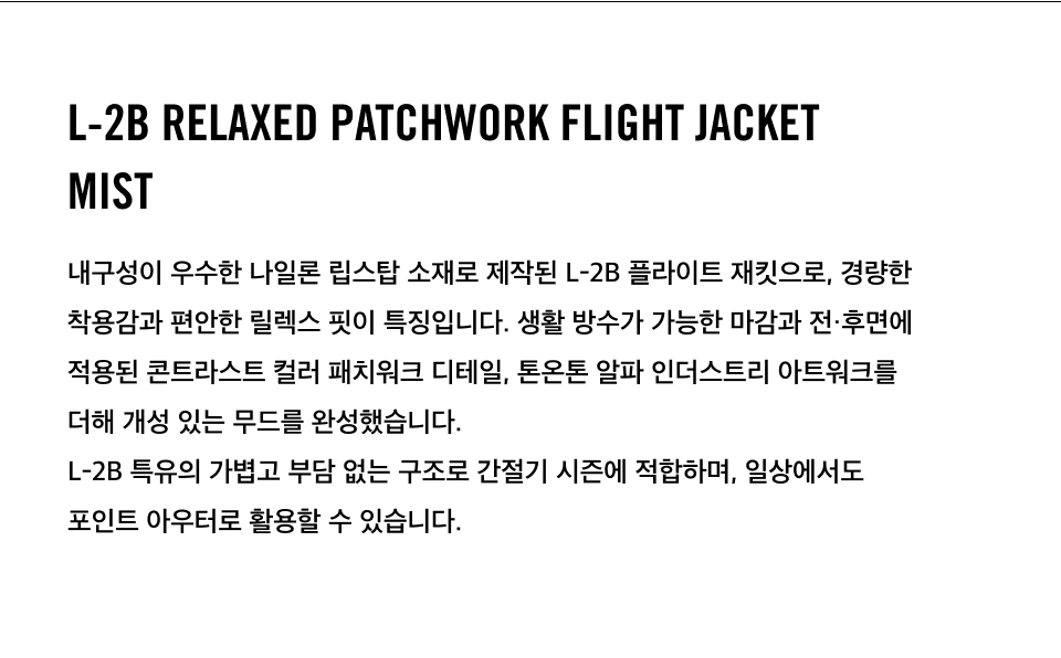 알파 인더스트리 L-2B 릴랙스드 패치워크 플라이트 자켓 미스트