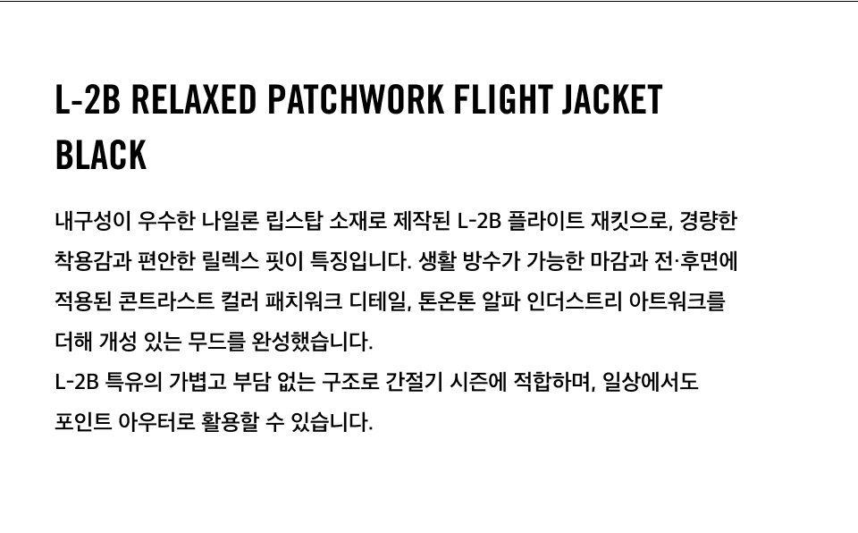 알파 인더스트리 L-2B 릴랙스드 패치워크 플라이트 자켓 블랙