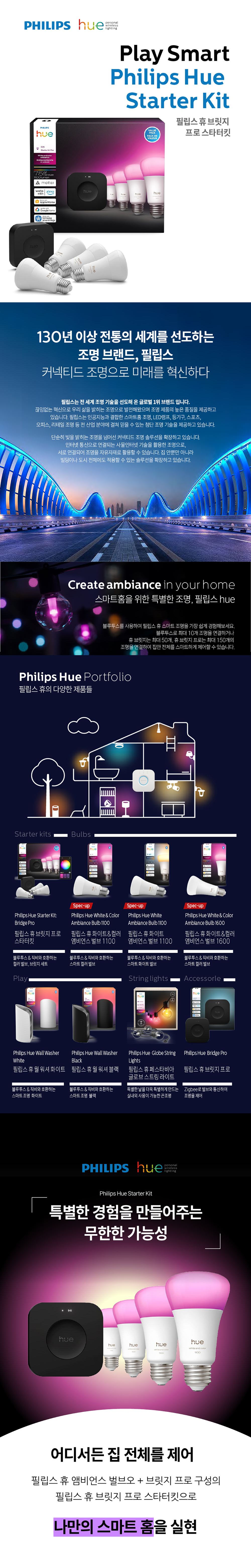 필립스 휴 컬러 앰비언스 브릿지 프로 스타터킷 1100 루멘