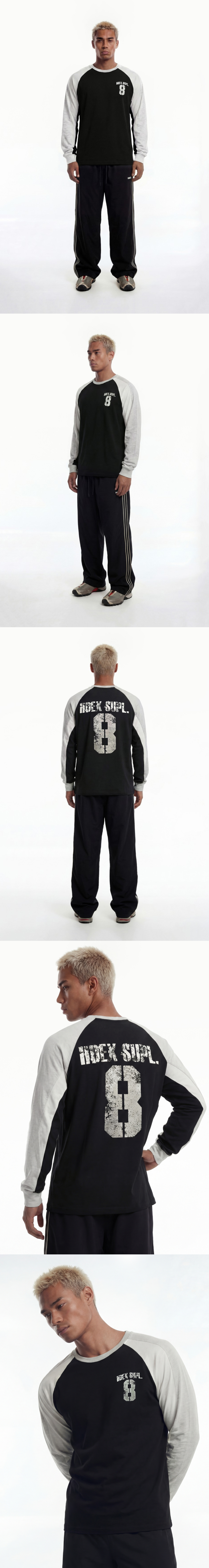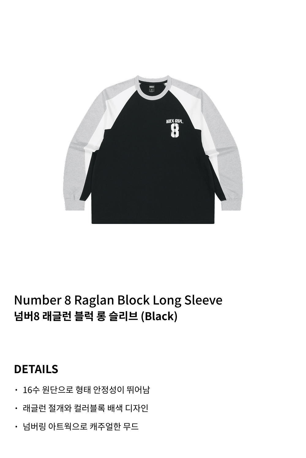 에이치덱스 넘버8 래글런 블럭 롱 슬리브 블랙
