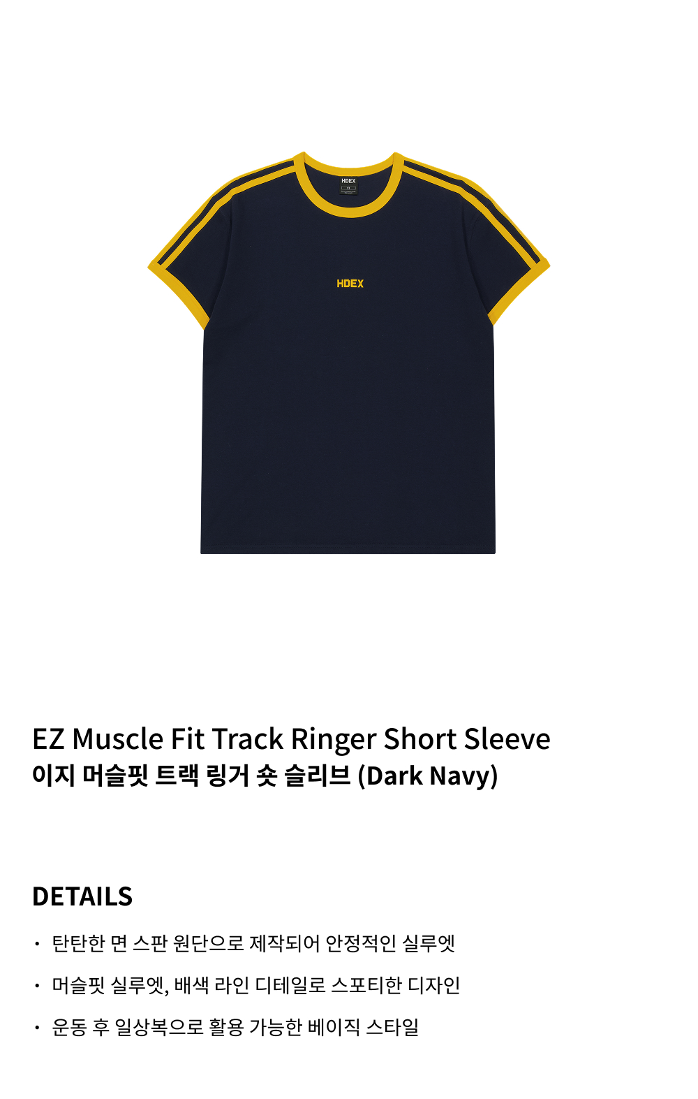 에이치덱스 이지 머슬핏 트랙 링거 숏 슬리브 다크 네이비