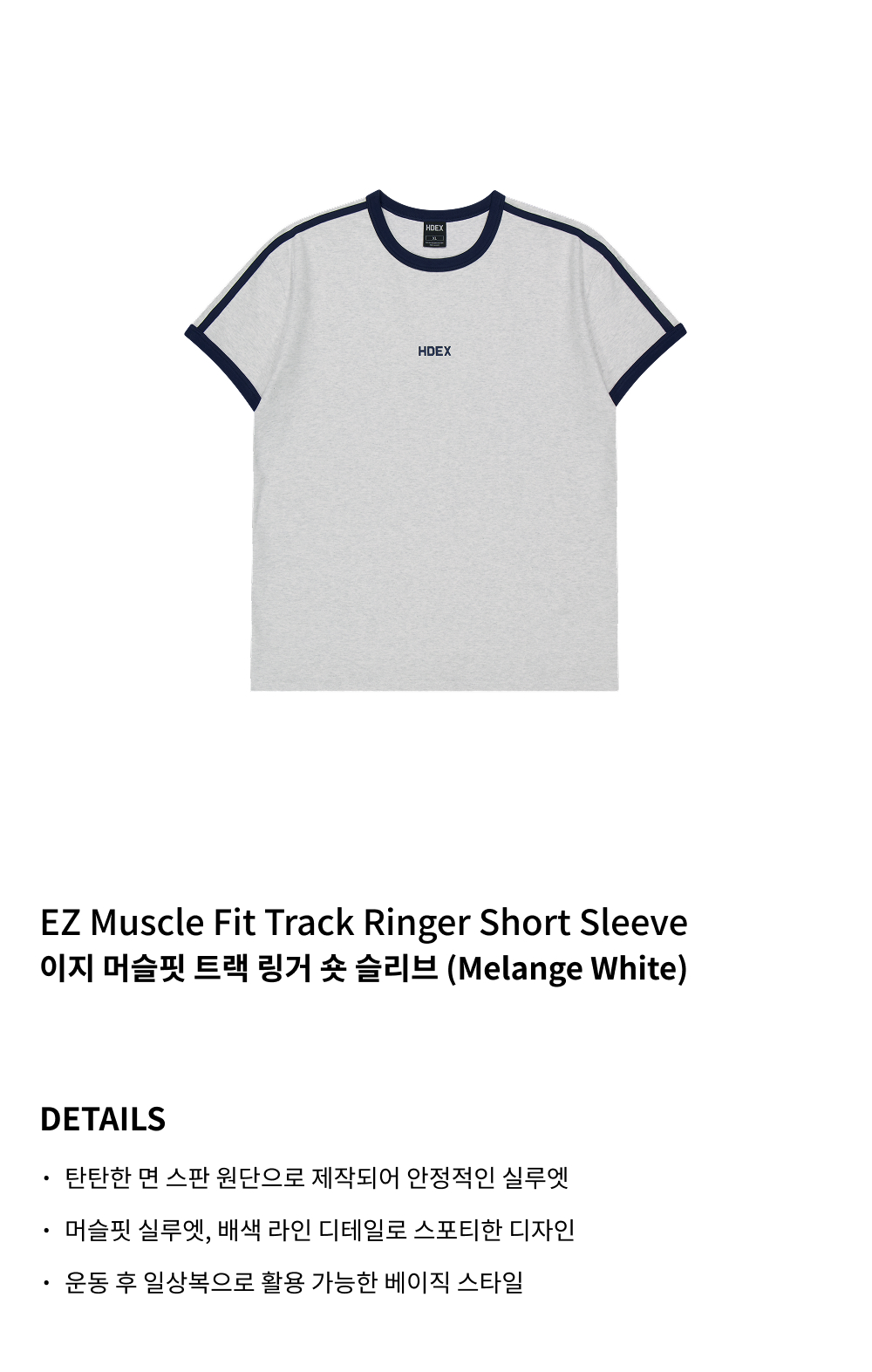 에이치덱스 이지 머슬핏 트랙 링거 숏 슬리브 멜란지 화이트