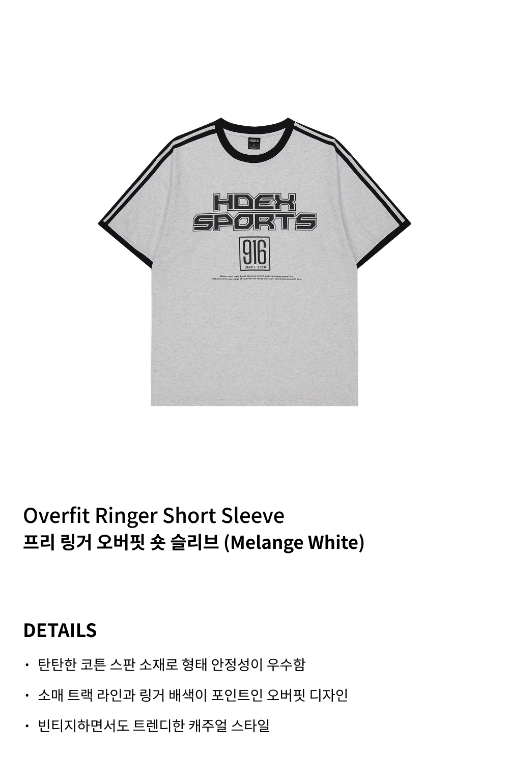 에이치덱스 프리 링거 오버핏 숏 슬리브 멜란지 화이트
