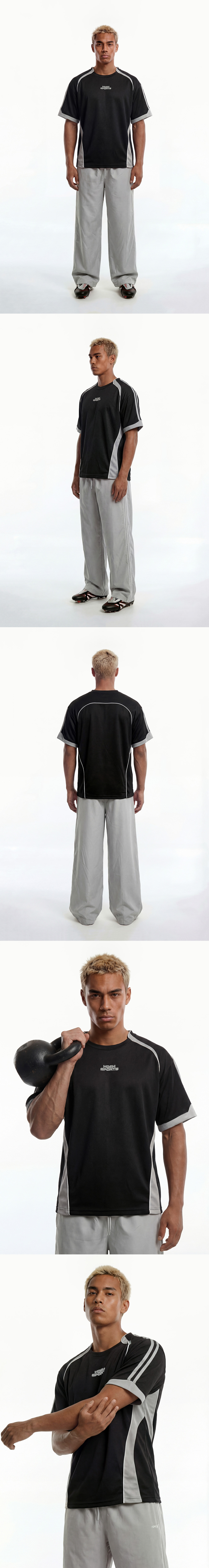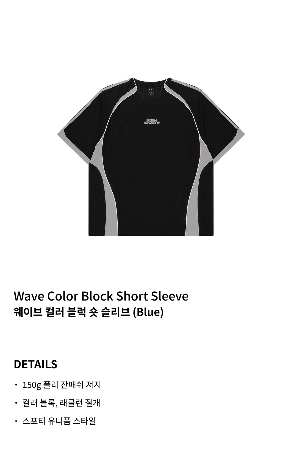 에이치덱스 웨이브 컬러 블럭 숏 슬리브 블랙
