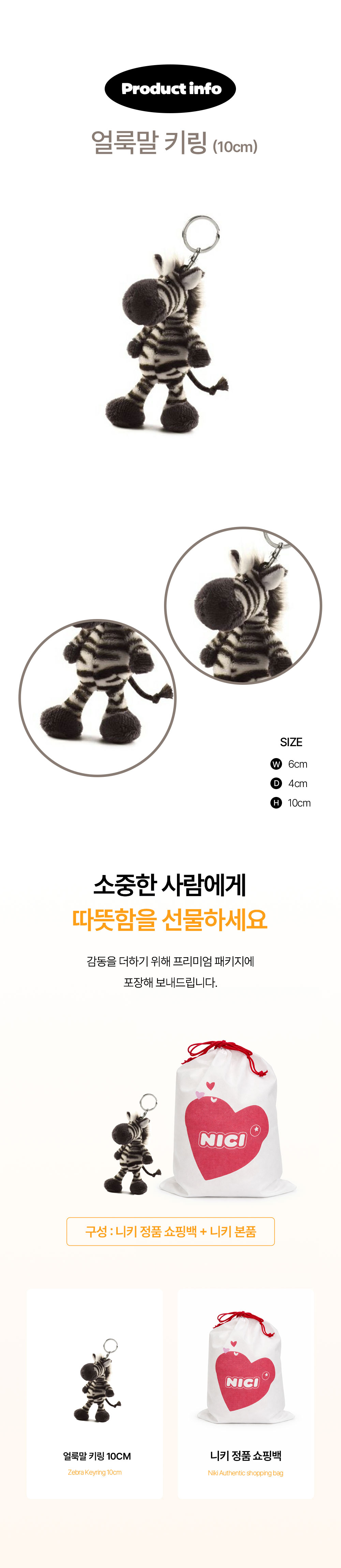 니키 얼룩말 키링 10cm