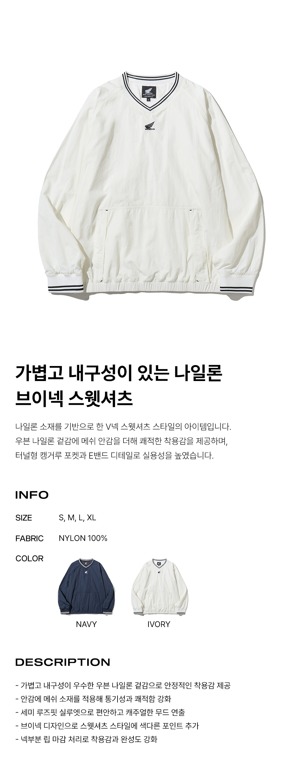 혼다 베이직 나일론 포켓 롱슬리브 아이보리