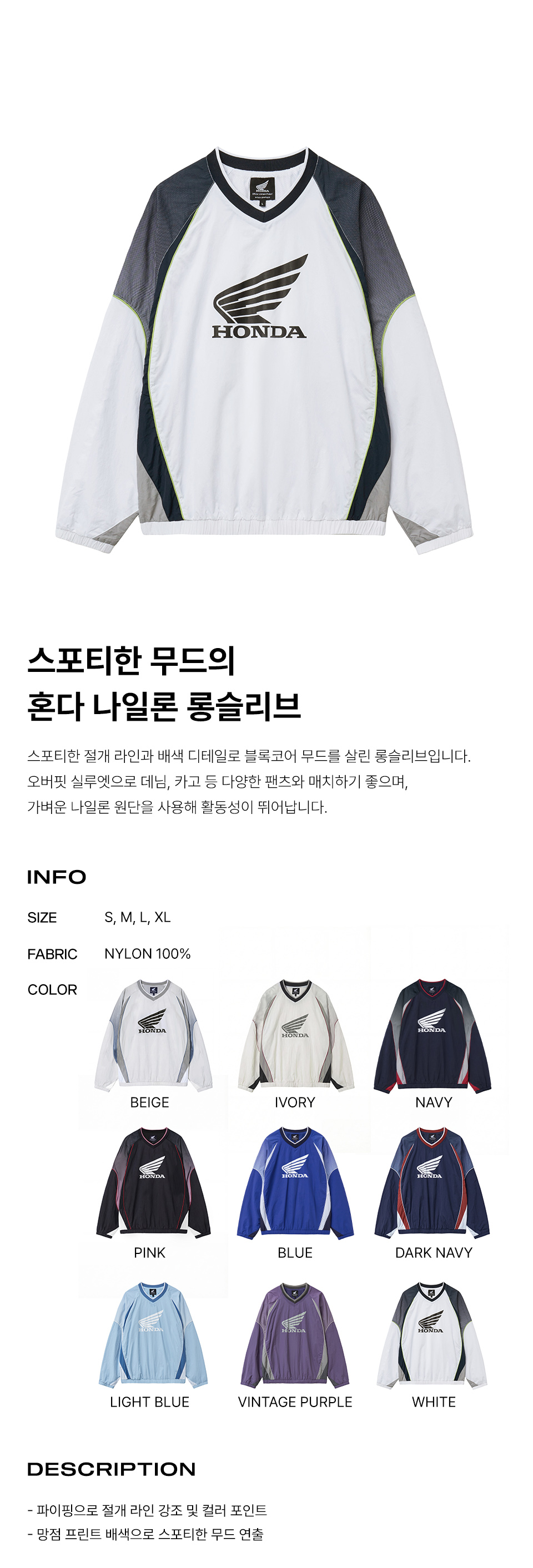 혼다 스피드 트랙 나일론 롱슬리브 화이트