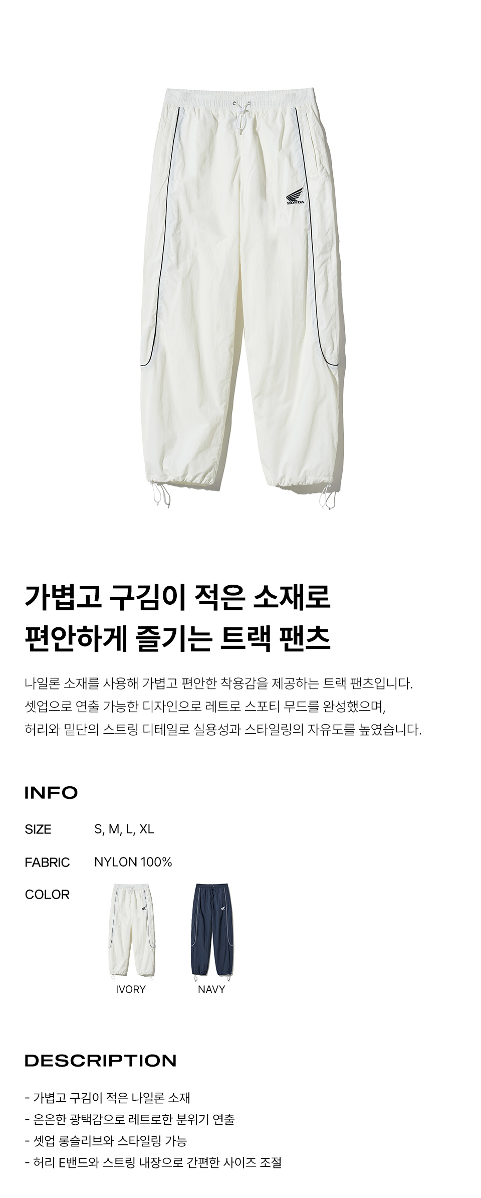 혼다 베이직 로고 나일론 트랙 팬츠 아이보리