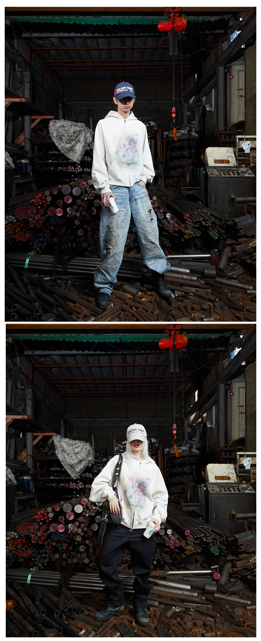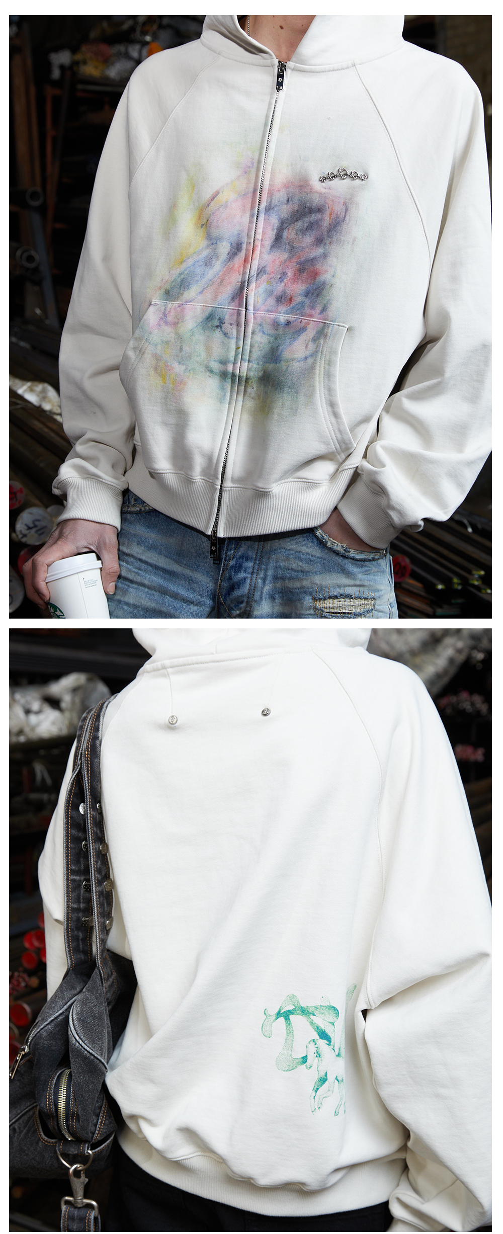 파코서플라이 사이렌 크레용 집업 후디 아이보리