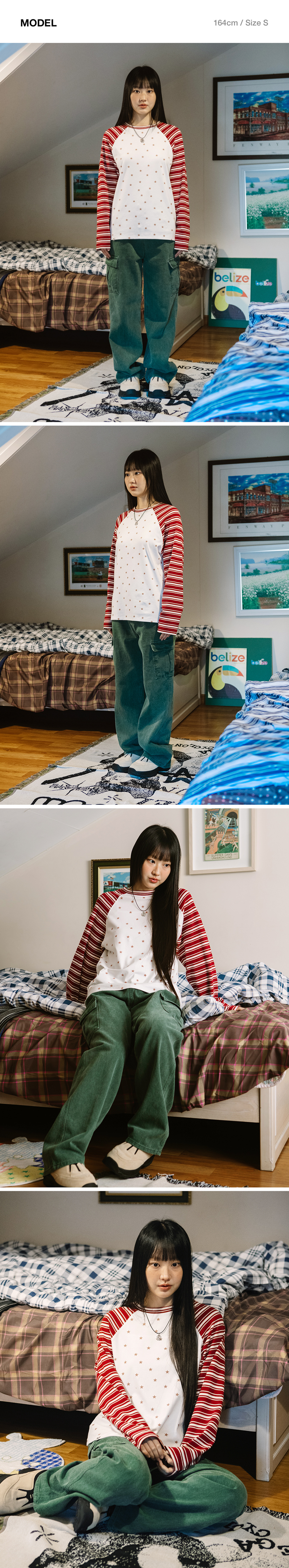 카비시 스트라이프 스타 래글런 롱슬리브 티셔츠 화이트