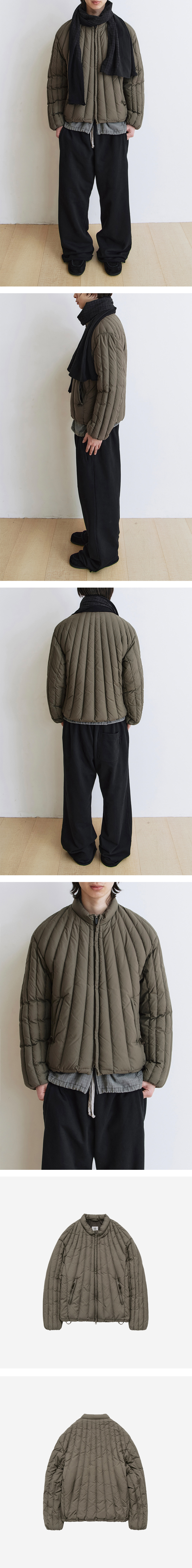 floating down puffer - 2차 세계대전에 사용된 Kapok Vest를 재해석한 디자인 - 가먼트 워싱으로 구현한 자연스럽게 빛바랜 색감 - 부드럽고 실키한 촉감의 안감 - 높지 않은 넥라인 - YKK 투웨이 지퍼 클로징 - 소맷단 히든 립 - 밑단 스트링 & 고정용 비즈 - 스웨이드 풀러 적용된 사이드 지퍼 포켓 - 2개의 내부 포켓 *모델: 178cm / 마른 체형, 3사이즈 착용