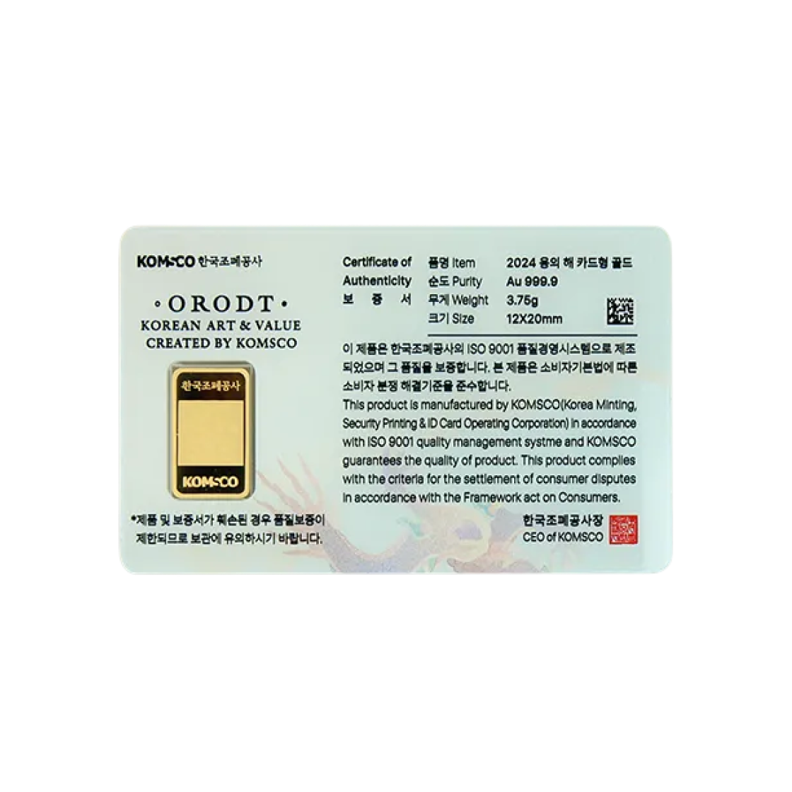 금 한국조폐공사 2024 갑진년 용의 해 카드형 골드 3.75g