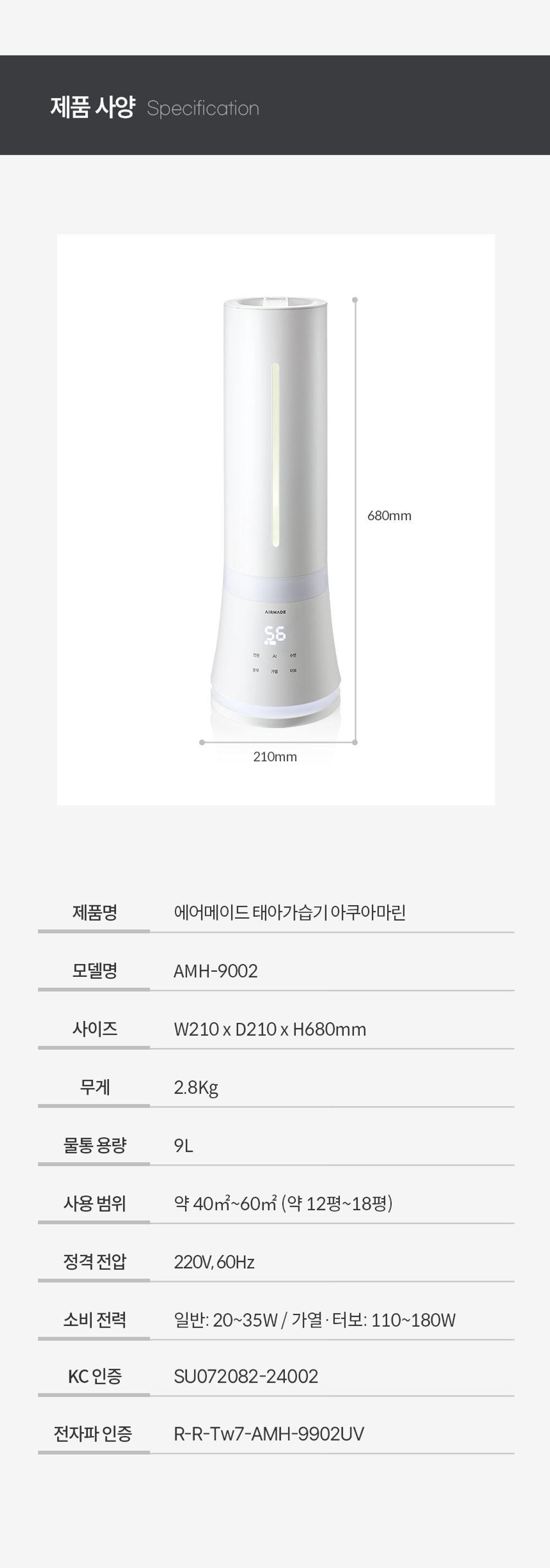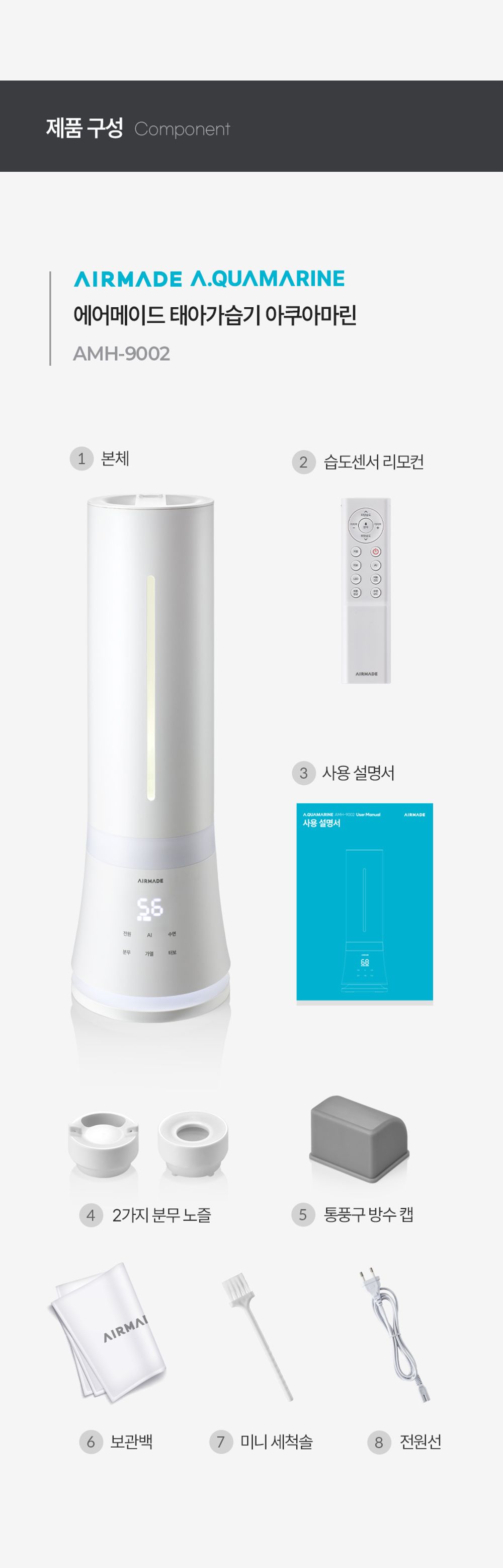 에어메이드 가열 살균 9L 복합식 국민가습기 아쿠아마린 9002+무빙휠 세트