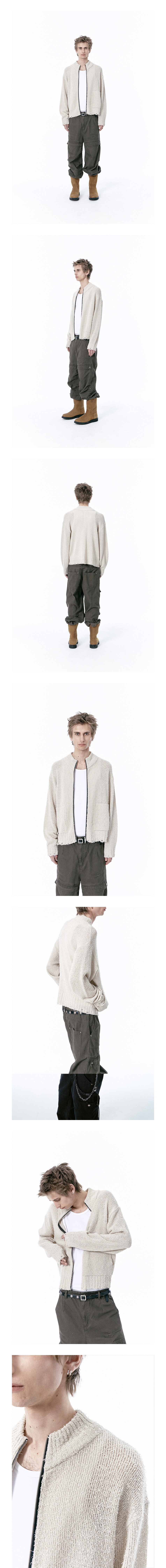 SHELL : ACRYLIC 100% - 세미오버핏 - 크롭기장 - 소매단, 밑단 데미지 디테일 - YKK 2WAY ZIP-UP - 사이드 포켓