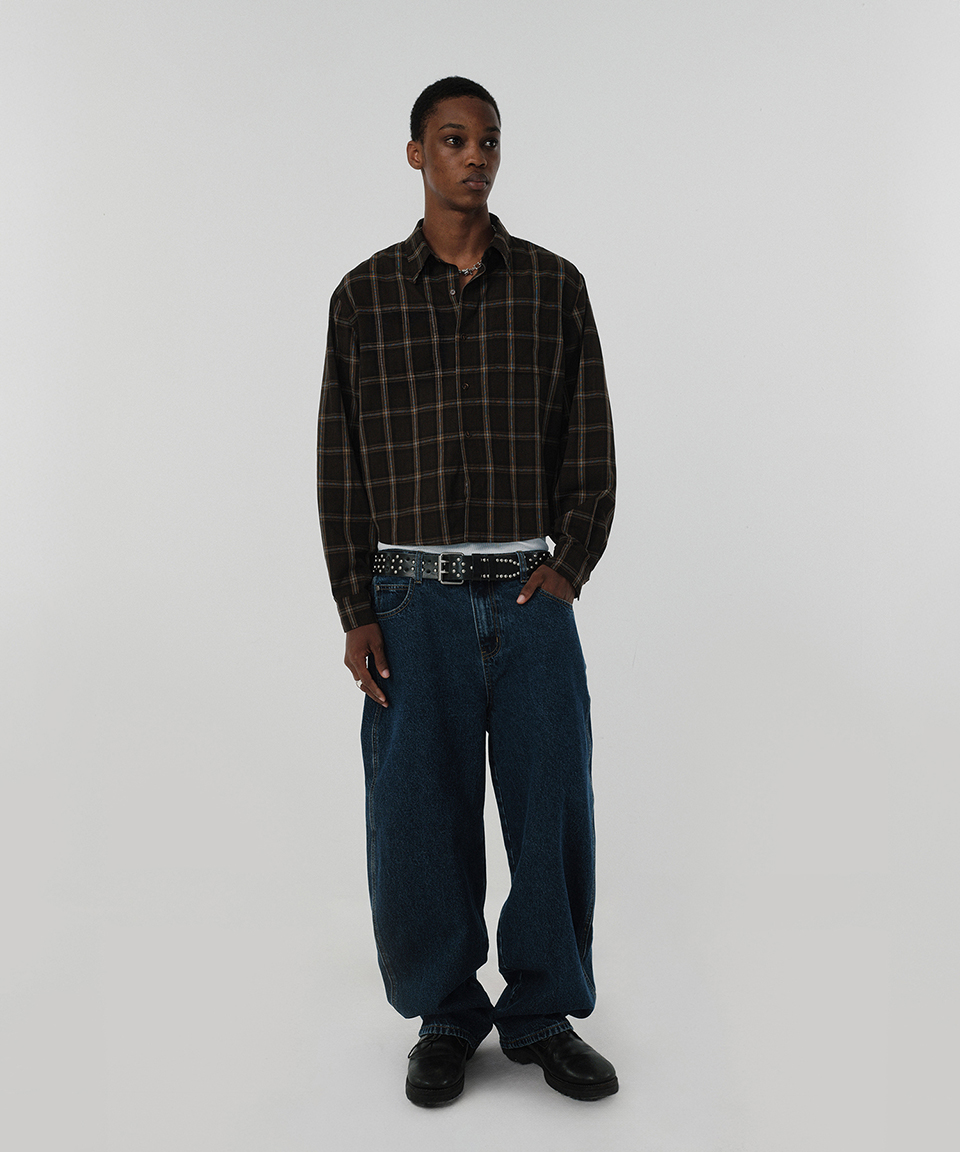 스웨이드 크롭 체크 셔츠 브라운