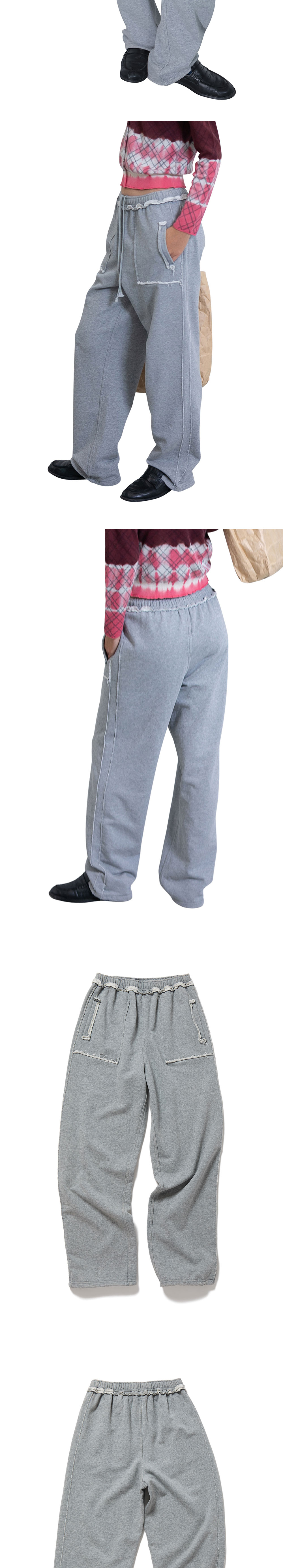 퍼버즈 우먼 프레이드 스웨트 팬츠 그레이입니다. - 100% 코튼 플리스 소재를 사용한 여유로운 조직감 - 워싱 가공과 올이 풀린 듯한 프레이드 디테일이 특징 - 드로우코드가 포함된 신축성 있는 허리 밴드 적용 - 밑단 스트링 조절 기능 및 전면 포켓 구성 * 모델 정보: 175cm 그레이 착용