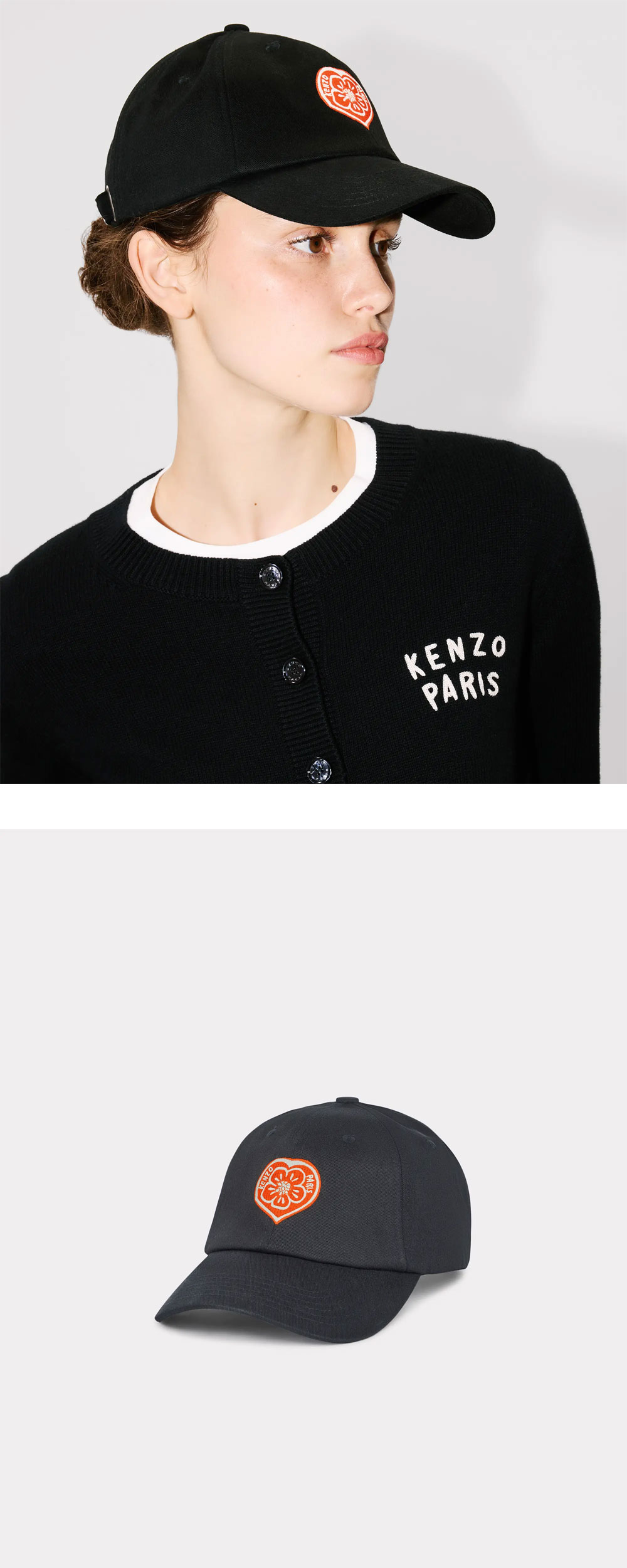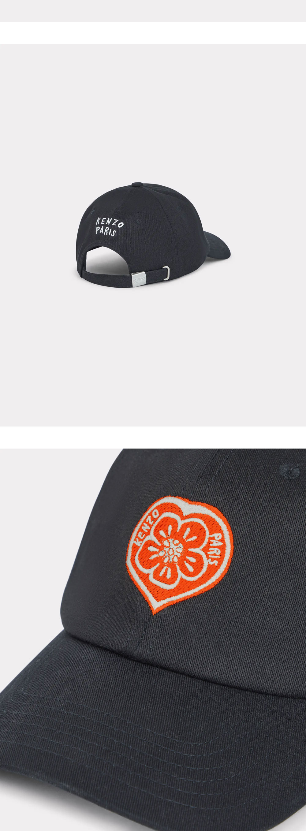 겐조 보케 하트 엠브로이더드 캡 블랙입니다. - 전면의 강렬한 'Boke Heart' 레드 자수가 돋보이는 6패널 코튼 캡 - 52cm에서 60cm까지 조절 가능한 백스트랩으로 다양한 두상에 맞춤형 착용 가능 - 견고한 코튼 소재와 조절 가능한 헤드밴드 설계로 완성한 데일리 스테이트먼트 아이템 - 겐조 특유의 위트 있는 그래픽과 클래식한 블랙 베이스의 조화