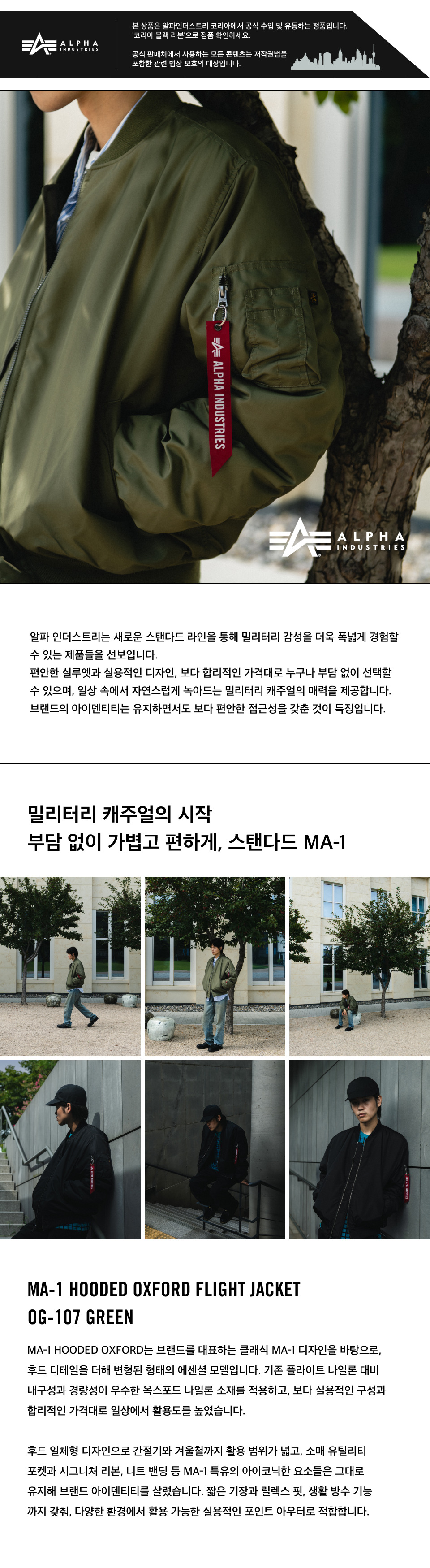 알파 인더스트리 MA-1 후디드 옥스포드 플라이트 자켓 OG-107 그린