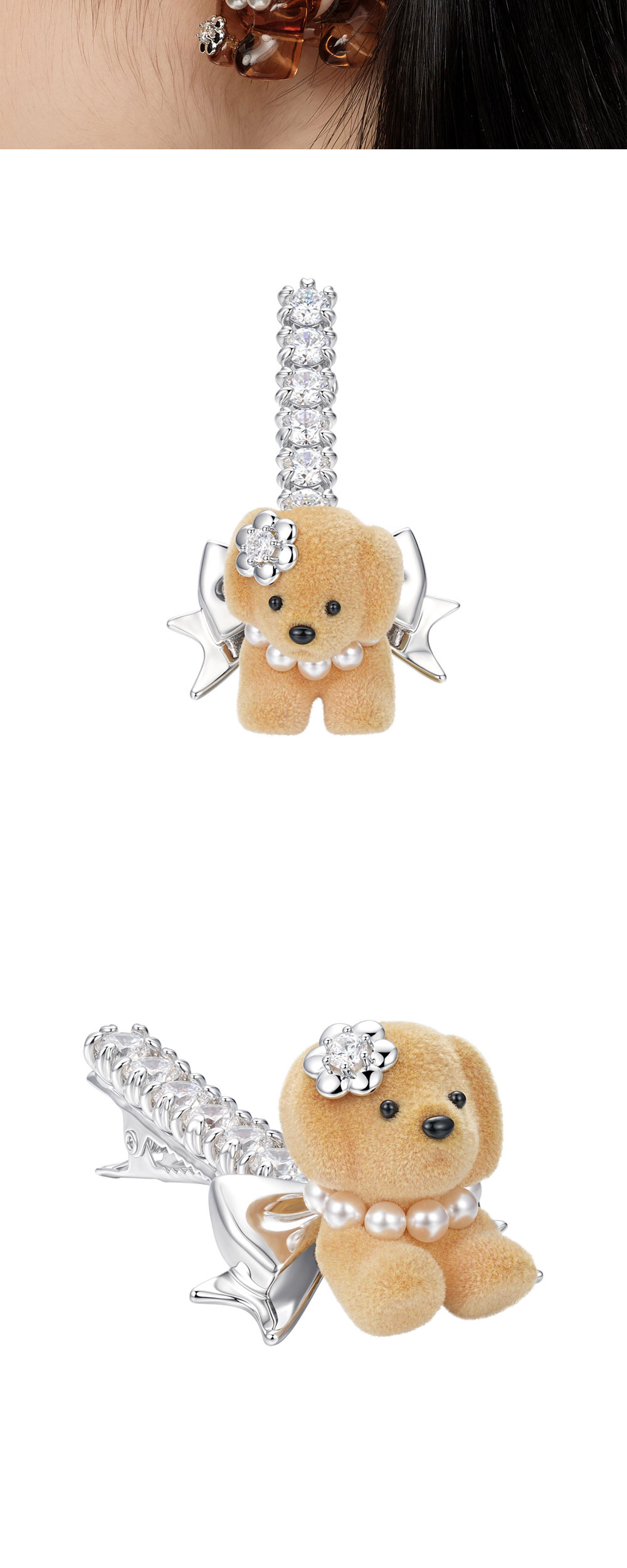 위민 퍼피 보우노트 씬 헤어 핀 라이트 브라운입니다. - 얇고 정교한 씬 프레임 위에 따뜻한 라이트 브라운 컬러의 퍼피 유닛이 세팅된 디자인 - 강아지 펜던트 옆으로 정교하게 세팅된 지르콘 리본 포인트가 특징 - 약 5.5cm의 컴팩트한 씬 프레임으로 앞머리나 옆머리에 가벼운 포인트 가능 * 모델 컷은 참고를 위한 이미지이며 같은 제품의 다른 컬러 사진이 포함되어있습니다.