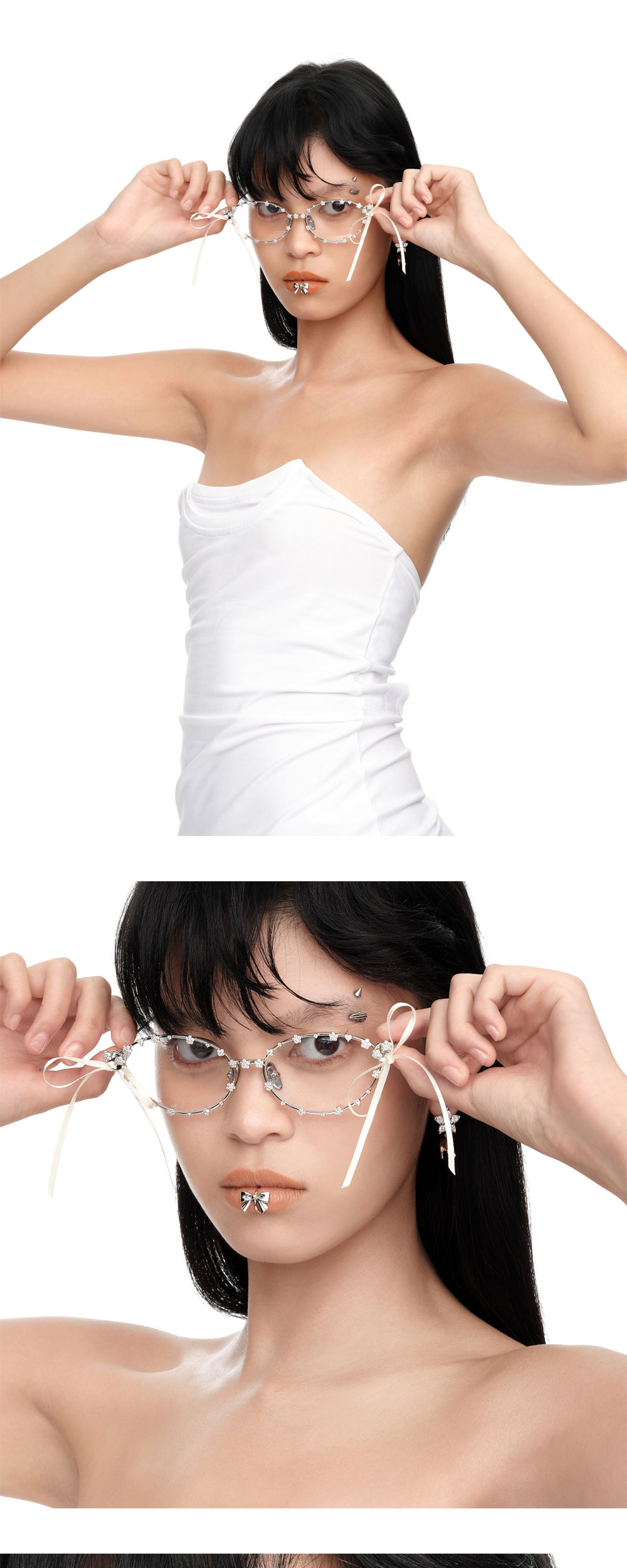 Yvmin Flower Gemstone Decoration Glasses Silver - 26SS