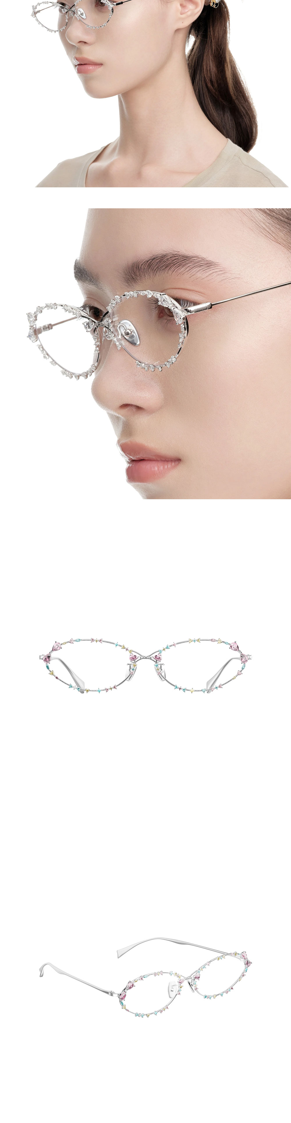 위민 비터 솔티 글레이즈 글래스 멀티 컬러입니다. - 26SS 컬렉션의 리플 텍스처를 반영한 입체적인 실버 프레임 안경 - 가로 14cm, 세로 3.8cm의 존재감 있는 사이즈로 완성한 페이스 주얼리 아이템 - 28.6g의 무게감과 프레임 곳곳의 멀티 컬러의 지르콘 세팅이 선사하는 화려한 실루엣 - 'Bitter Salty Glaze' 컨셉의 유니크한 광택감이 돋보이는 스테이트먼트 피스 *모델 컷은 제품의 실제 컬러와 다른 점 참고 부탁드립니다.
