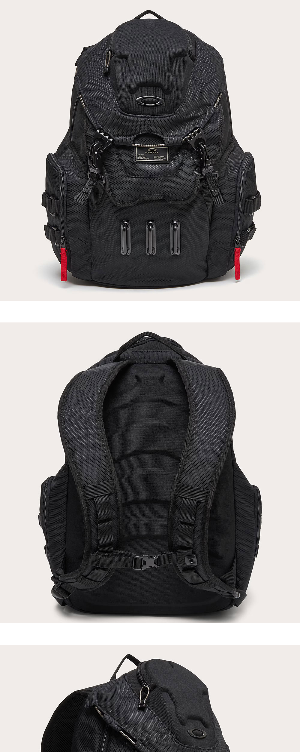 오클리 배스룸 싱크 RC 백팩 블랙아웃 입니다. - 내구성이 뛰어난 코듀라(Cordura) 및 발수 원단 사용 - 내부 패드 슬리브로 15인치 노트북 수납 가능 - 안경/선글라스 보호용 하드 케이스, 상단 미디어 포켓 등 다용도 포켓 - 조절 가능한 브러시드 안감의 패드 어깨끈 및 버클
