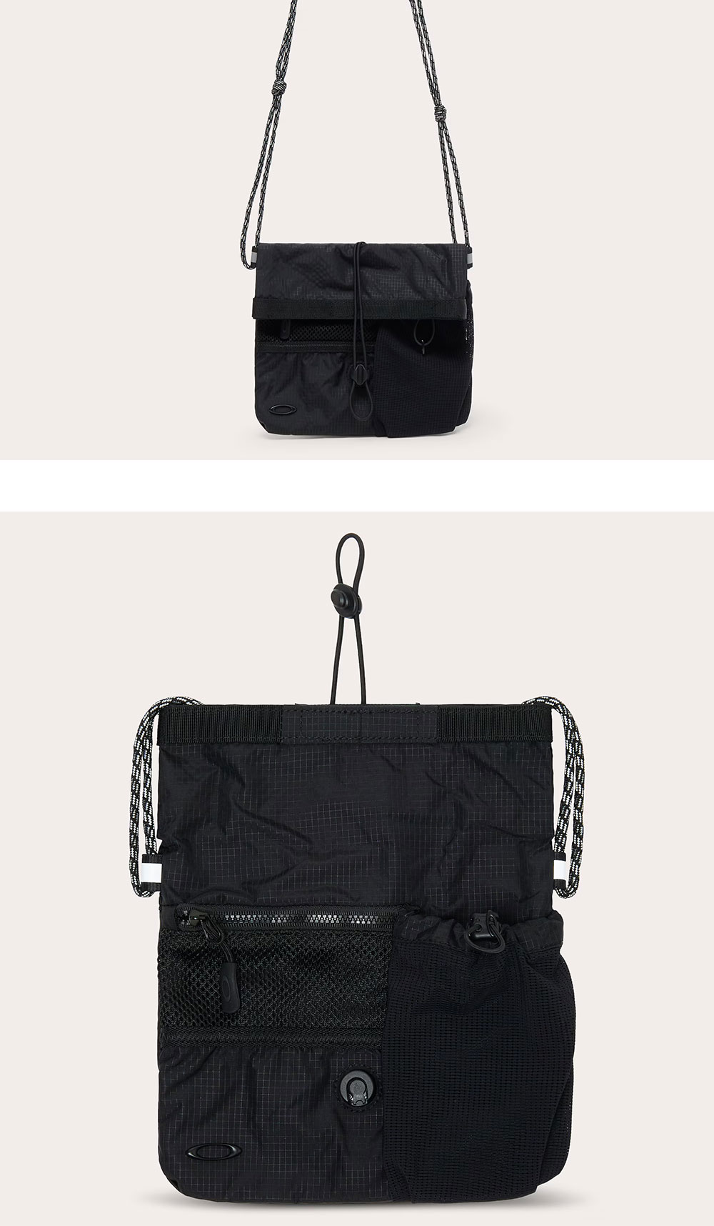 오클리 리저브 파우치 피치 블랙 입니다. - 전면 실버 메탈릭 타원 로고 브랜딩 - 자석 플랩을 접어 조절 가능한 2L 수납 공간 - 전면 지퍼 메쉬 포켓 등 다채로운 내외부 포켓 - 길이 조절 가능한 숄더 코드와 패드 스트랩 - 발수 가공된 재활용 나일론 소재 사용