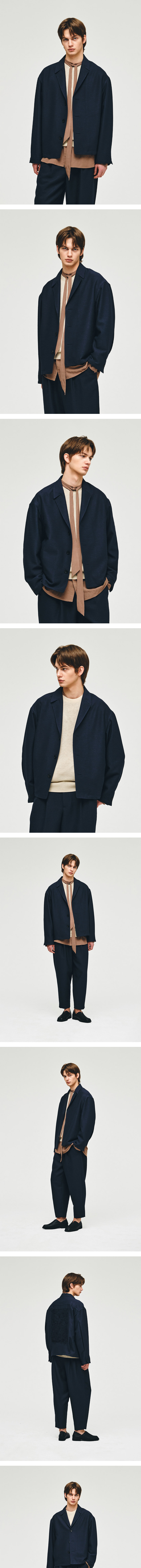 - COCOON-FIT - 코쿤핏 실루엣으로, 아방가르드한 룩 표현 - 매력적인 조직감과 실루엣이 잘 살아나는 소재로 제작 - 앞,뒷판 터크디자인으로 입체감있는 실루엣 연출 - 뒷판 라울뒤피 엠브로이드 아트워크 - 벌룬핏 실루엣의 쓰리턱 팬츠로, 자켓과 함께 아방가르드한 실루엣 표현 - BI2PT268NY와 세트 구성