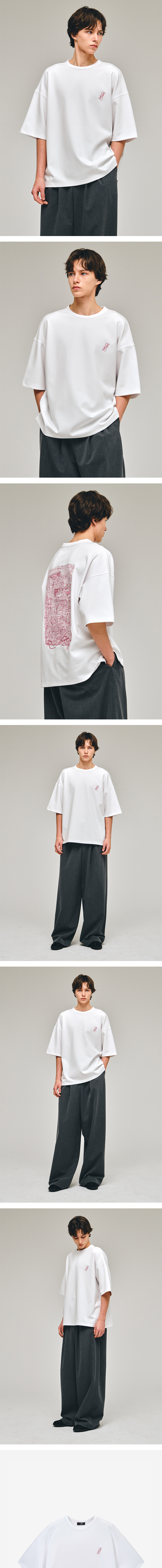- 라울뒤피 엠브로이드 티셔츠 화이트 - 폴리, 면, 스판 혼용의 소프트하고 신축성 좋은 소재 - 여유로운 오버 실루엣 - 앞면 가슴에 ZIO 심볼 자수 디자인 - 뒷면에 라울뒤피 작품 자수 디자인 - 양 사이드 트임 디자인