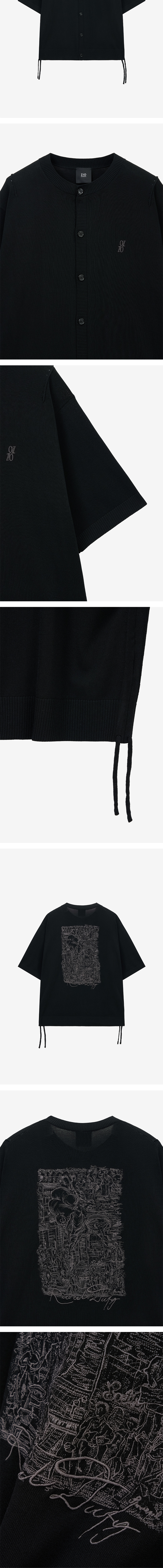 ZIOSONGZIO COLLECTION Raoul Dufy Embroidered Collarless Cardigan Black