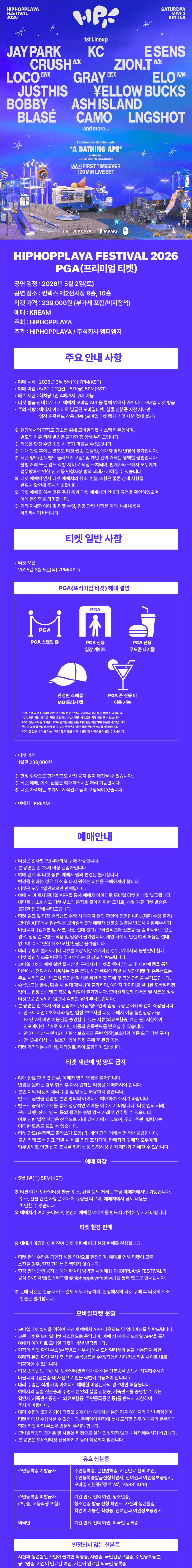 힙합플레이야 페스티벌 2026 PGA(프리미엄 티켓)
