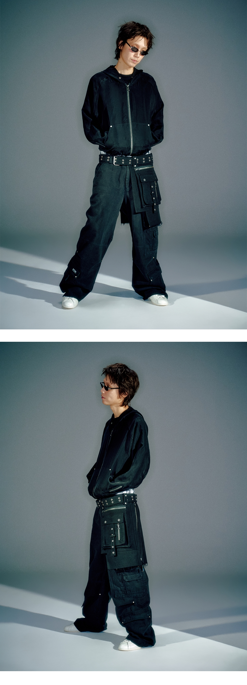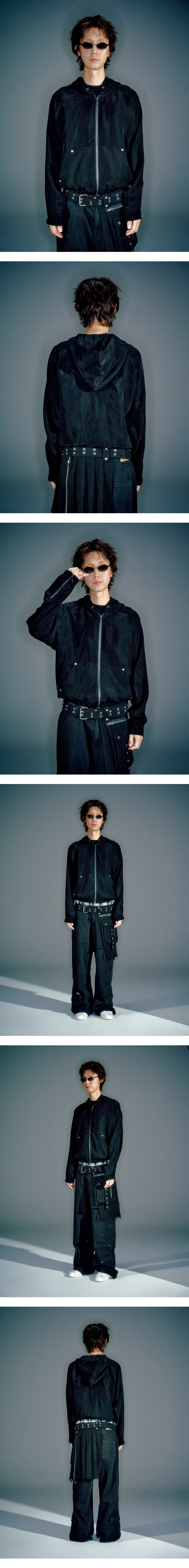 큐프라 원단을 사용해 흐르는 실루엣 연출 넉넉한 후드 깊이 YKK 지퍼 사용 소매 지퍼 사용해 의류의 기능성 확대 L / XL (CM) Length : 62 / 64 Bust : 62 /64 Sleeve Hem : 89 / 91 Model is 183cm and is wearing a size L BEMBERG 100%