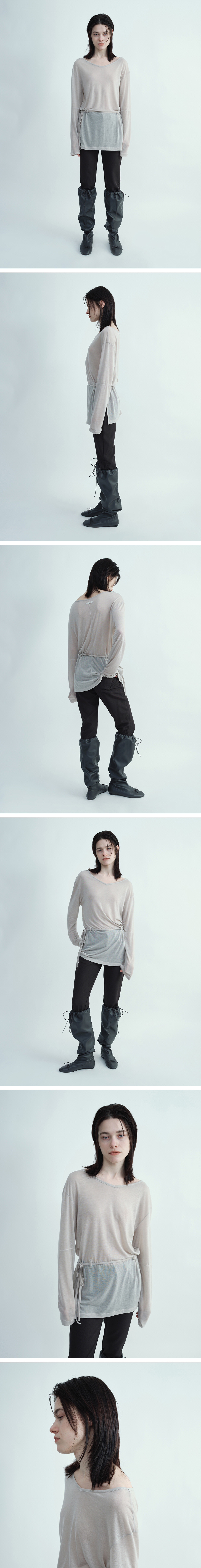 MILLO WOMEN Sheer Tencel Strap T-Shirts Light Gray