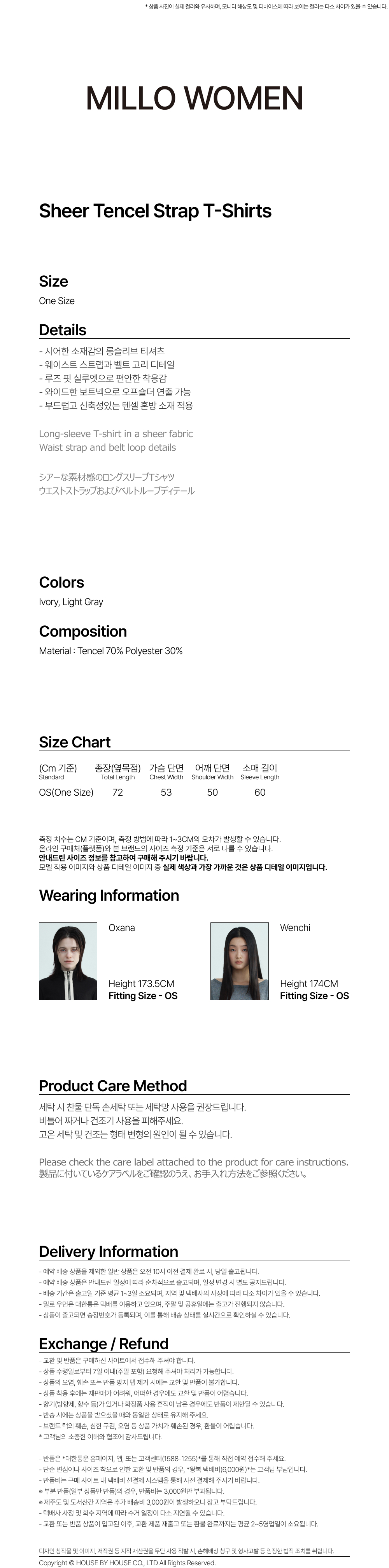 밀로 우먼 시어 텐셀 스트랩 티셔츠 아이보리