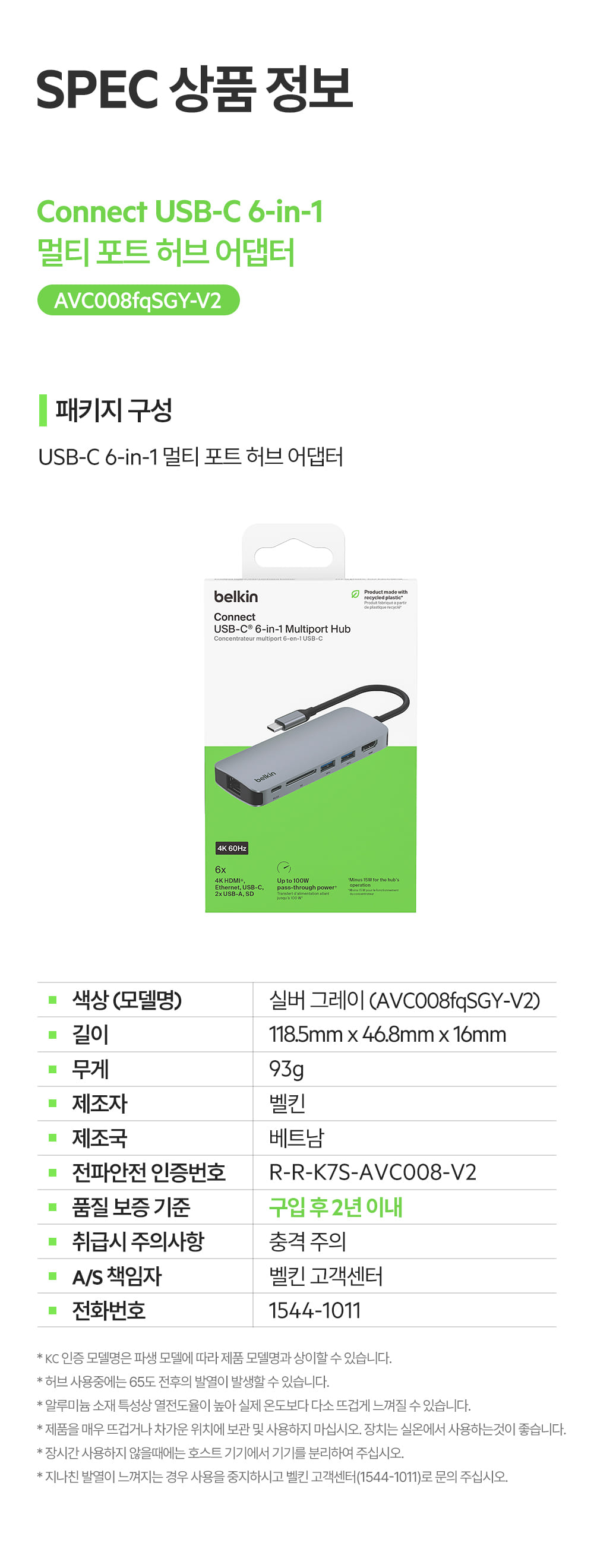 벨킨 6in1 USB-C타입 멀티 허브 AVC008