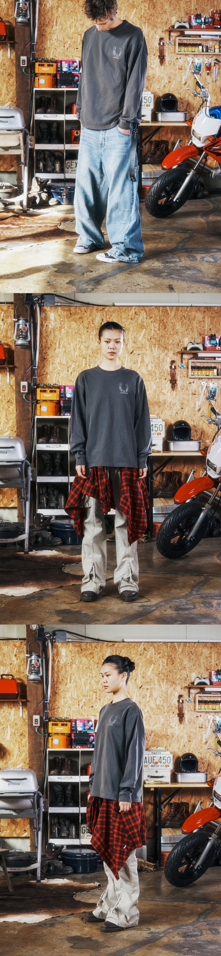 더바이닐하우스 럭키 하우스 롱슬리브 티셔츠 차콜