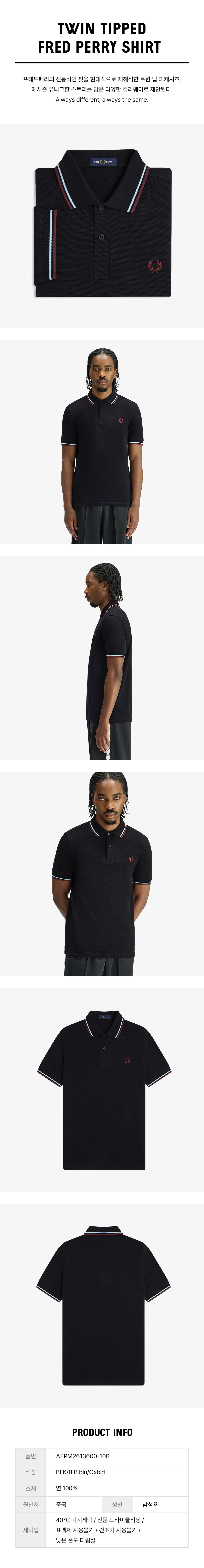 프레드페리 M3600 트윈 팁 프레드페리 셔츠 블랙 볼보이블루 옥스블러드