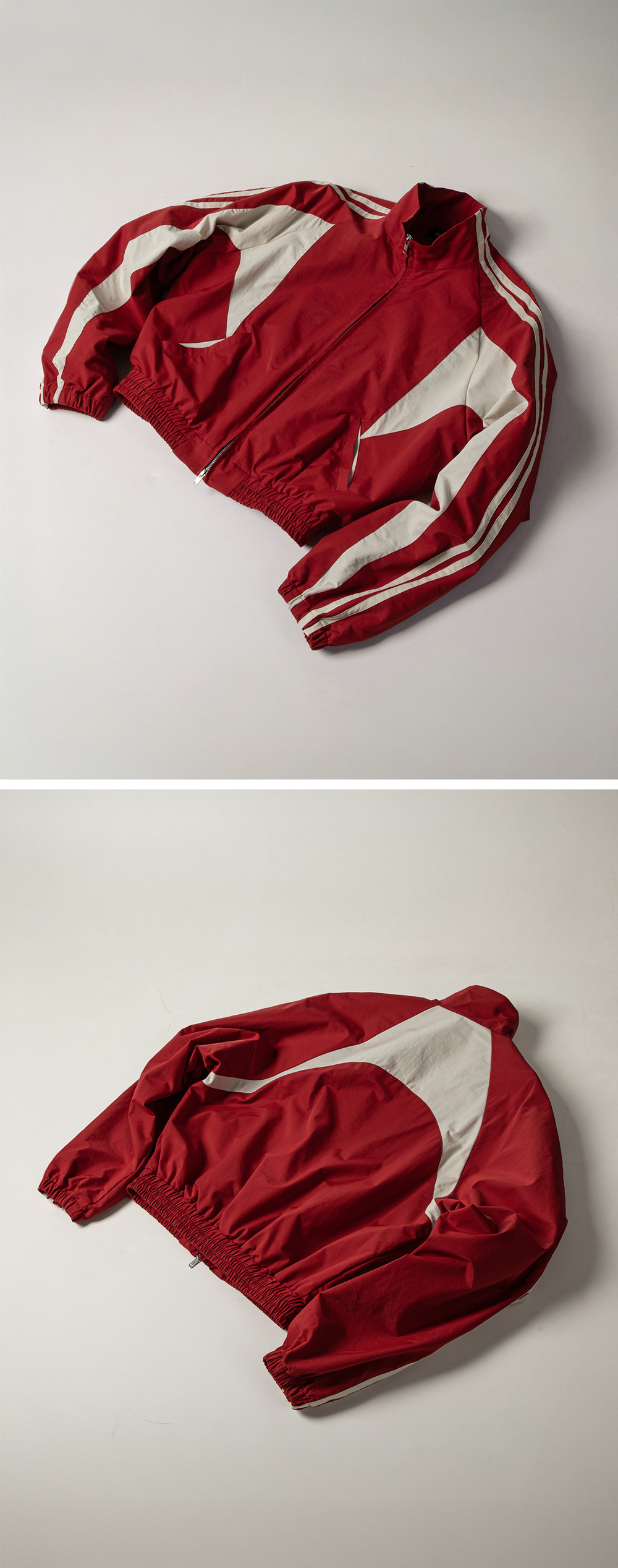 Fabric : Cotton 60%, Nylon 40% - 크롭 핏 - 컬러 배색 - 테이프 디테일 - YKK社 #5 Two-Way Zipper • 제조국 : 대한민국 • 세탁 방법 : - 뒤집어 찬물 세탁 (건조기 사용 금지) - 드라이클리닝 권장 Size Info. (CM) M : 소매 84, 가슴 64, 총장 60 L : 소매 86, 가슴 67, 총장 62