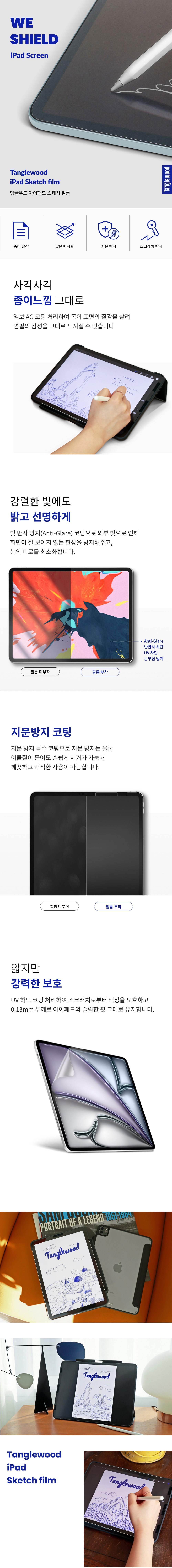 탱글우드 항균 스케치 필름 아이패드 에어 6세대 13형