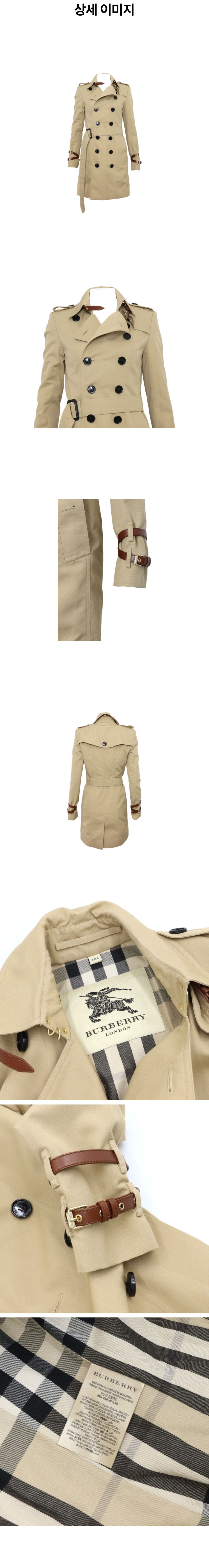버버리 4047025 런던 베이지 레더 스트랩 디테일 체크 벨티드 여성 트렌치 코트aa60808