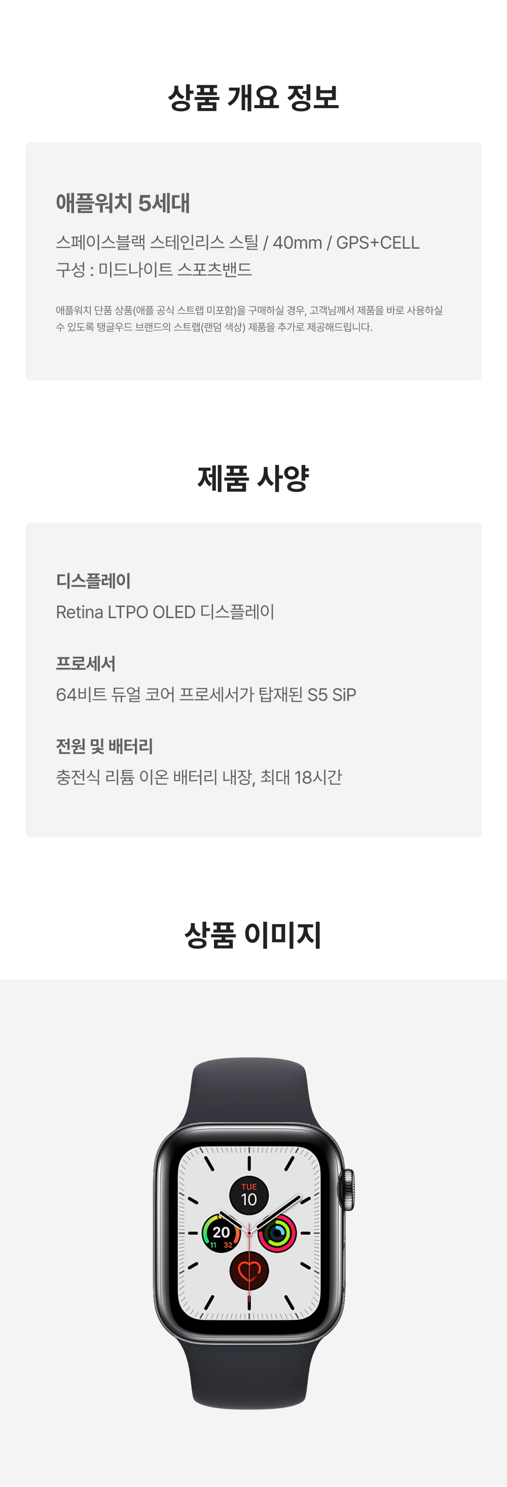 [A등급] 리퍼비시 애플워치 5 40mm GPS+Cellular 스페이스블랙 스테인리스 스틸 케이스 스포츠 밴드 미드나이트