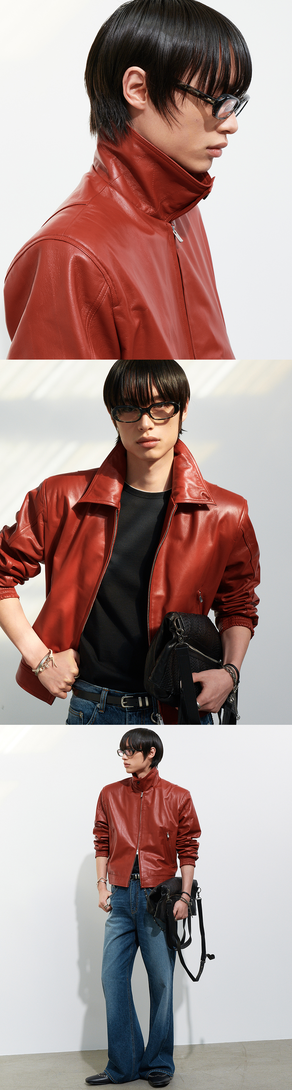 이탈리아산 램스킨 나파 레더로 제작된 3D 숏 자켓입니다. 유연하면서도 밀도감 있는 나파 레더를 사용해, 입체적인 패턴 구조와 실루엣이 자연스럽게 유지됩니다. 어깨 패드와 구조적인 패턴 설계를 통해 상체 라인을 정제하며, 숏 기장으로 균형 잡힌 비율을 완성합니다. 칼라에 버튼 여밈 디테일을 더해 채웠을 때 하이넥 실루엣으로 연출이 가능하며, 뒷면 밑단은 밴딩 처리로 자켓과 블루종의 경계를 자연스럽게 잇습니다. -DETAIL- 이탈리아산 램스킨 나파 레더 어깨 패드 내장 하이넥 연출 가능한 칼라 버튼 디테일 뒷면 밴딩 처리 구조 지퍼와 단추 여밈이 결합된 커프스 형태 소매 MADE IN KOREA