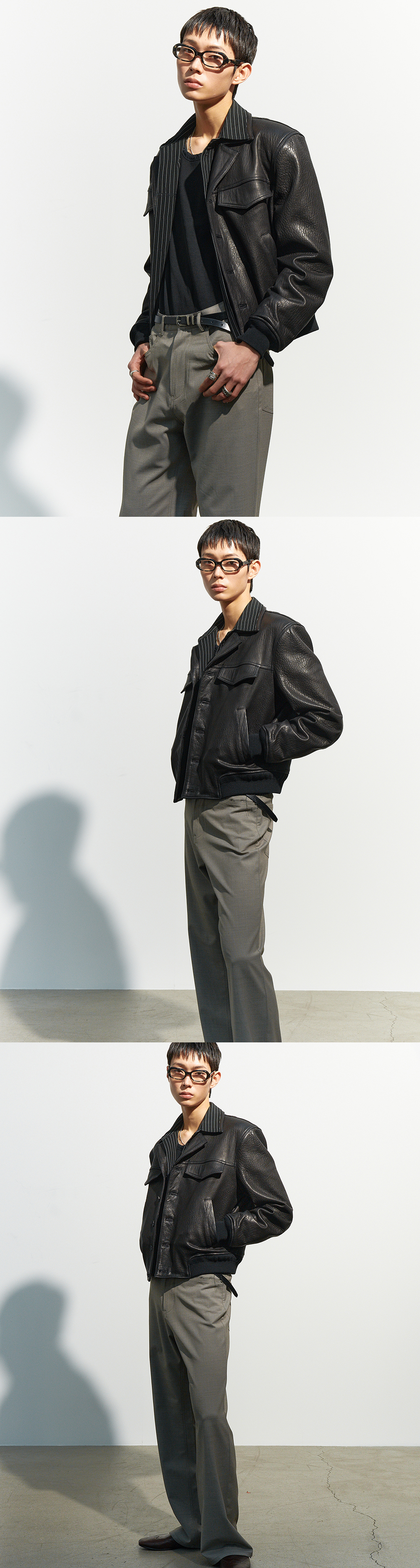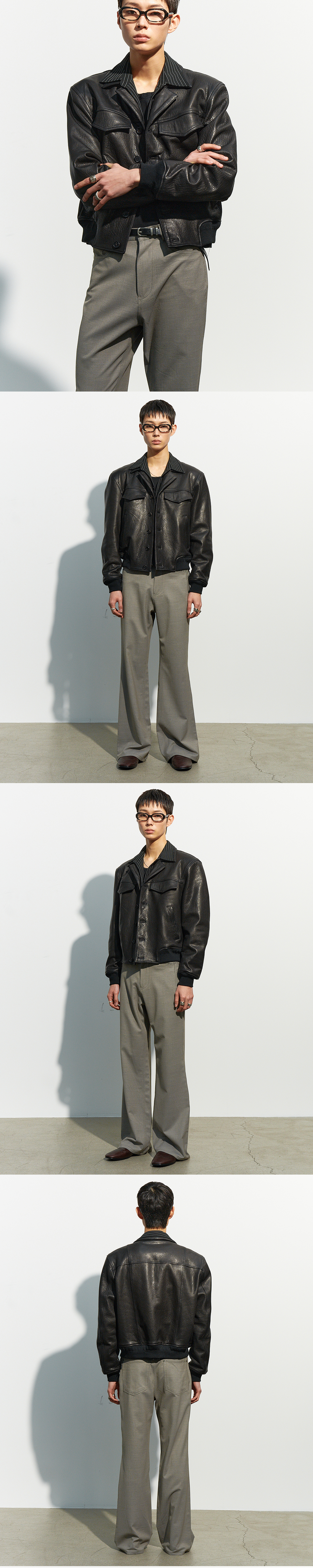 튀르키예산 램스킨을 사용해 제작한 오픈 칼라 블루종입니다. 빈티지한 가죽 결이 살아 있는 소재로, 깊이 있는 텍스처와 은은한 광택이 특징입니다. 과한 광택 없이 차분한 무드를 유지하며, 시간이 지날수록 가죽 특유의 에이징이 더해집니다. 절제된 디테일 구성으로 미니멀한 인상을 완성합니다. -DETAIL- 튀르키예산 램스킨 소재 어깨 패드 내장 오픈 칼라 디자인 프런트 버튼 여밈 체스트 플랩 포켓 사이드 웰트 포켓 MADE IN KOREA