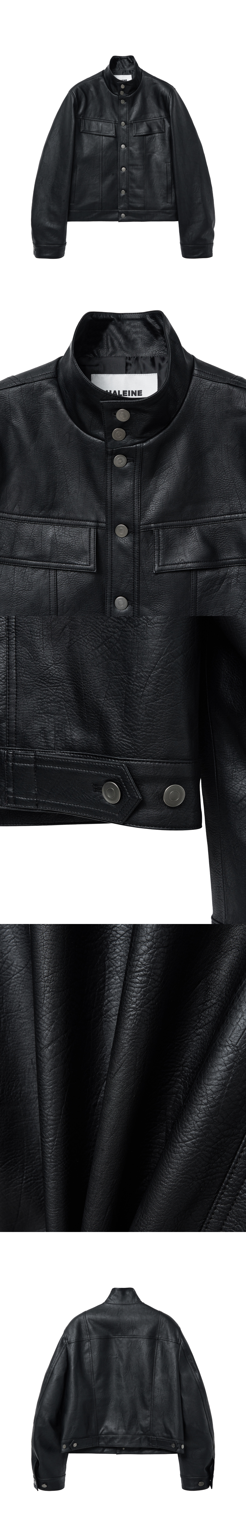 Haleine Faux Leather High Neck Trucker Black (XJ116)