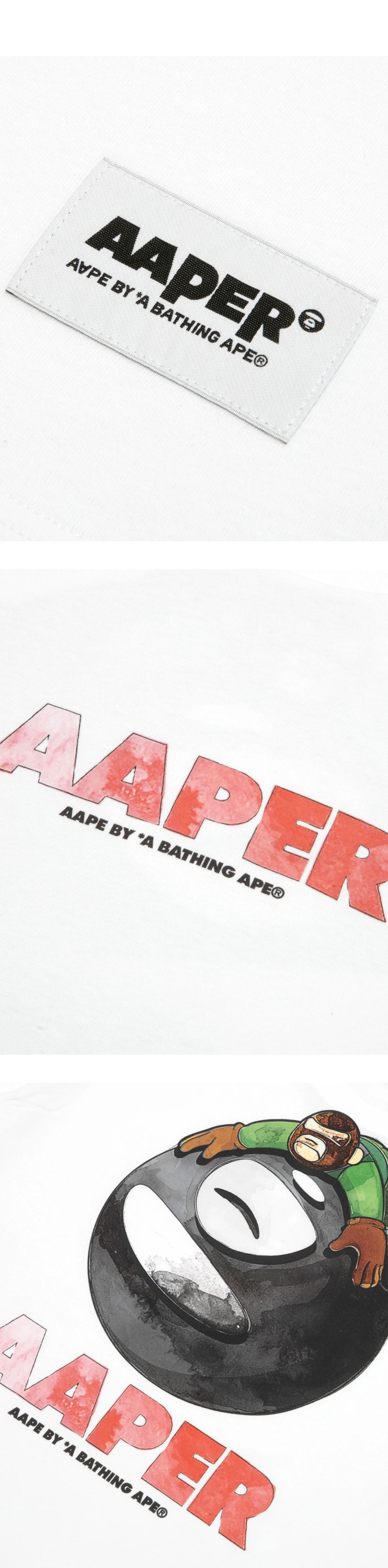 에이프 에이퍼 알도 & 플래닛 티 화이트입니다. - AAPE의 현대적인 감성과 위트 있는 그래픽 프린트가 결합된 캐주얼 티셔츠 - 여유로운 실루엣의 릴랙스 핏으로 편안한 착용감 - 탄탄한 클래식 크루넥 디자인을 적용 - 개성 있는 그래픽 디테일이 단독 착용 시에도 확실한 시각적 포인트를 선사하는 아이템