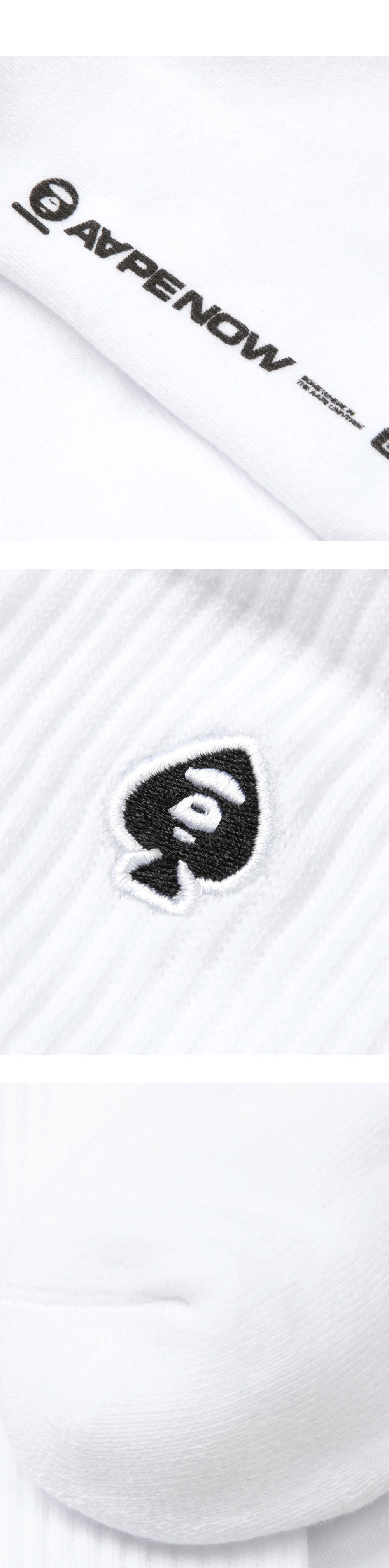 에이프 나우 스페이드 삭스 화이트 입니다. - 발목 부분에 에이프의 상징인 '문페이스'가 담긴 스페이드 로고가 정교하게 자수 처리 - 발바닥 부분에는 'AAPENOW' 브랜드 로고와 사이즈 표기가 프린팅 - 발목부터 종아리까지 이어지는 탄탄한 골조직(Ribbed)이 흘러내림을 방지하며 안정적인 착용감을 제공 - 흡습성이 좋은 면을 기본으로 나일론과 스판덱스가 혼방되어 신축성과 내구성이 뛰어남 - 적당한 길이감의 장목 양말 스타일