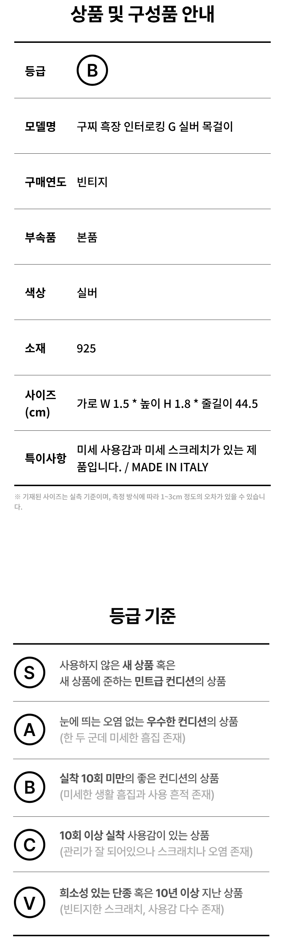 구찌 흑장 인터로킹 G 실버 목걸이 A-B48937