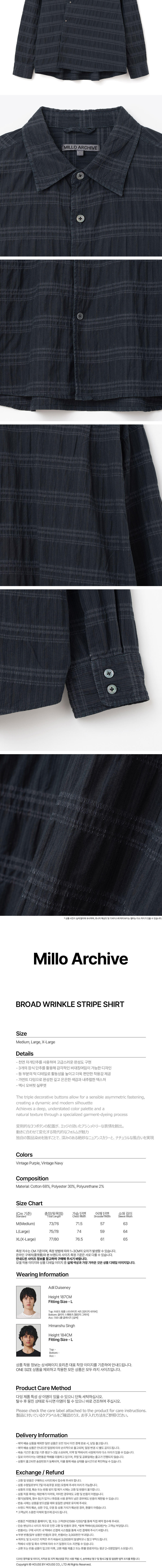 밀로 아카이브 브로드 링클 스트라이프 셔츠 빈티지 네이비